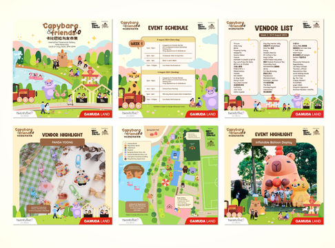 This project is for an artisan event organized by The Rows Market. The event's concept revolves around capybaras and their friends coming together to have fun. The tasks include creating an inflatable balloon, merchandise, an event poster, and several social media posts.